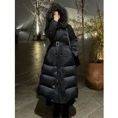 퍼 슬림핏 여성 벨트 롱패딩 후드 블랙